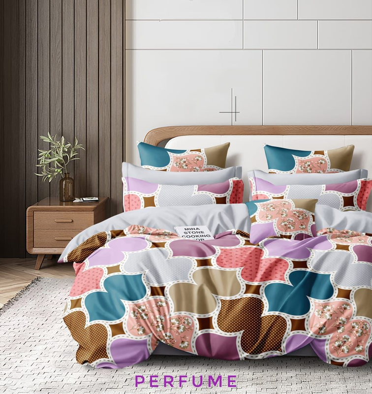 Perfume fitted (Elastic) Glace cotton Double Bed Sheet with Two Pillow Cover ( Bed Sheet Size – 78″x72″)